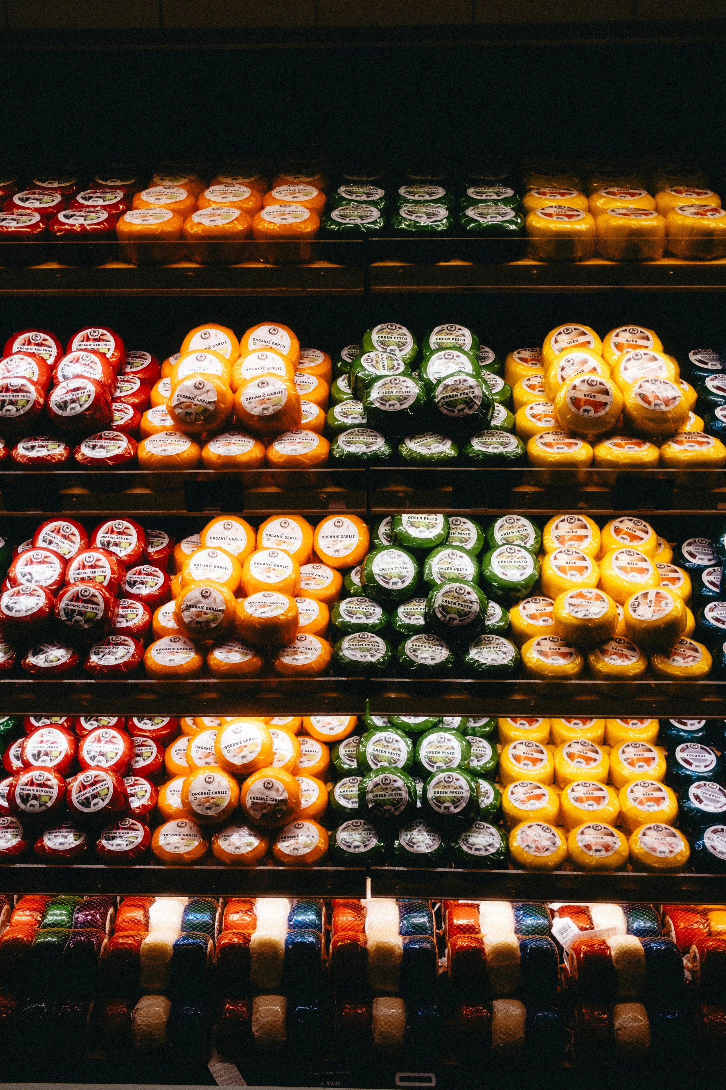 The challenge was to create visual codes conveying multiple layers of grocery item information using only shapes, colors, and textures—eliminating the need for multilingual text. I designed a global icon system for cheese shopping that's both practical and educational. By integrating shape, color, line, and pattern, the system encodes key cheese attributes like milk type, flavor, and texture, allowing shoppers to identify and compare options at a glance.