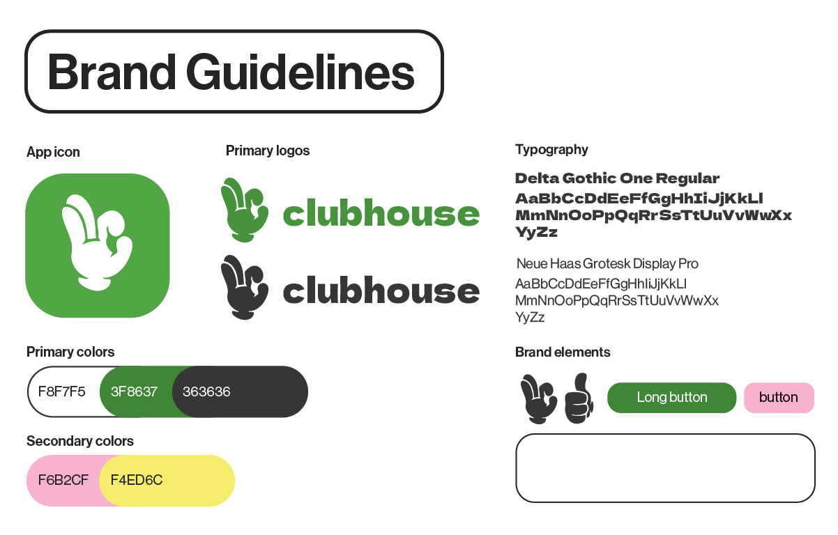 The logo design is a combination of several themes – the obvious of which being the traditional white golf glove. The playful design also forms a “C” for “Clubhouse” while also communicating that the app’s here to help, forming an “ok” gesture so you know “we got this.”
